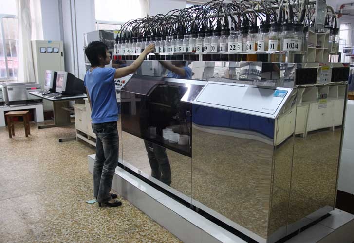 技术中心建筑面积8000多平方米,拥有检测试验仪器设备300多台套,配置了Datacolor电脑测配色系统、自动配料滴定系统、美国安捷伦色相气相质谱仪等国际先进的仪器设备,同时配套国内同行业最完备的中试基地及检测中心,拥有检测ISO欧标、AATCC美标、JIS日标及国标等40多个项目的检测能力,检测结果得到国际客户的认可,为新产品、新技术的研发提供了坚实保障。2010年,该技术中心以全国纺织行业第一的位次被认定为国家企业技术中心。
