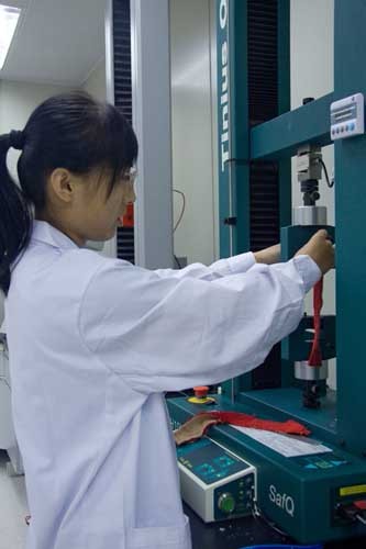 技术中心设置了综合实验室、化学实验室等检测实验室,可进行包括甲醛含量、可分解芳香胺、可萃取重金属、织物阻燃性能、织物外观测试、线圈强力及各种牢度等80多个项目。2009年,技术中心实验室通过了国际知名企业—迪卡侬公司的国际实验室认证,2010年通过了国家实验室认证审核。