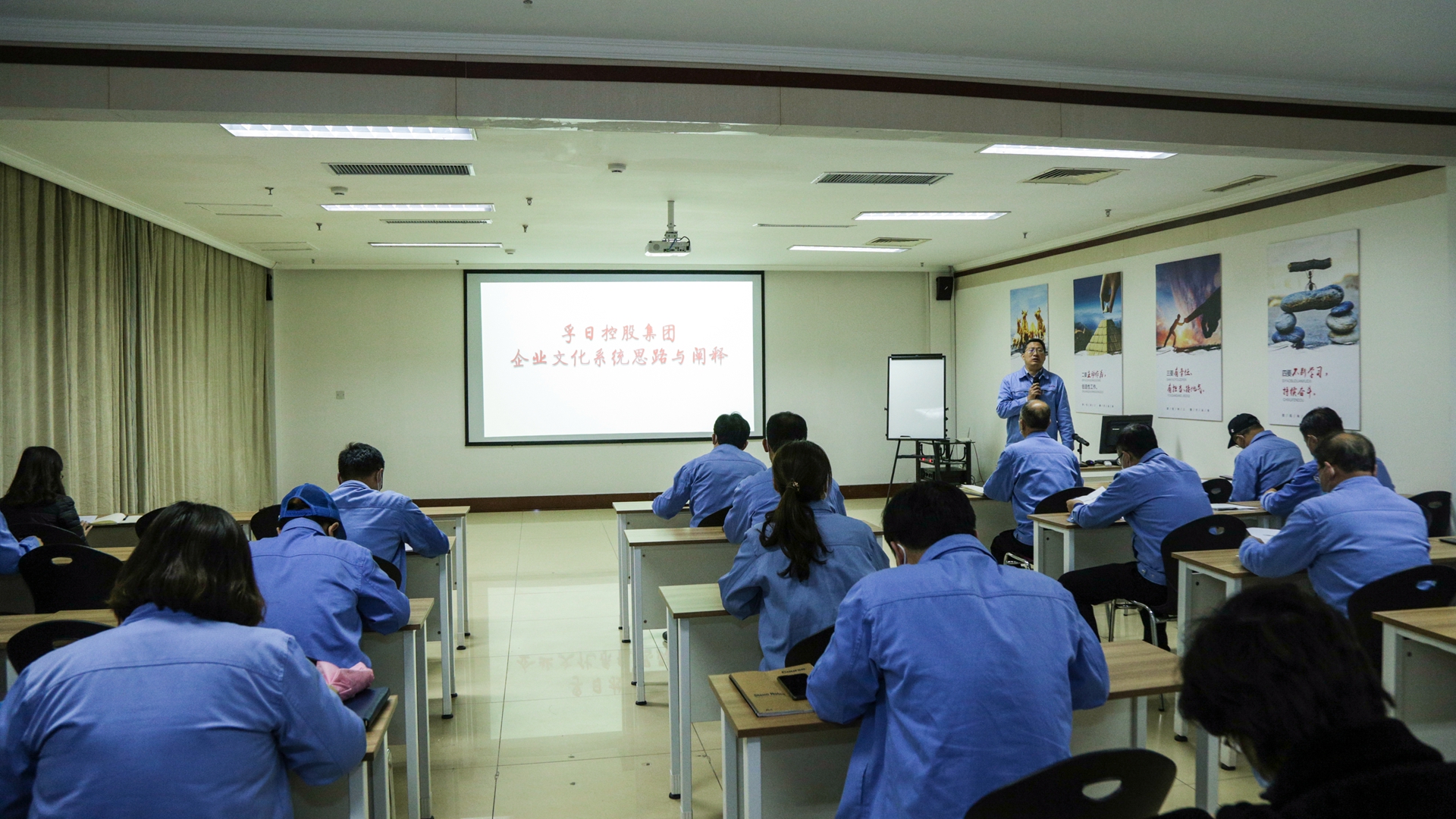 綦宗忠在讲解中指出,企业文化是企业在发展过程中形成的并为全体成员遵循的价值观念、共同意识、思维方式、行为规范及准则的总和。企业文化建设的目的,就是通过提炼培育企业精神,塑造企业价值观,潜移默化地使员工接受公司的价值观,把思想、行为引导到实现企业目标上来,实现个人目标与企业目标的统一,产生对工作的责任感、自豪感和使命感,增强对集体的认同感和归属感,用文化力推动生产力,以适应新的竞争环境,培育公司优良习气,满足员工内在需求,提高企业管理水平,保证企业健康发展。