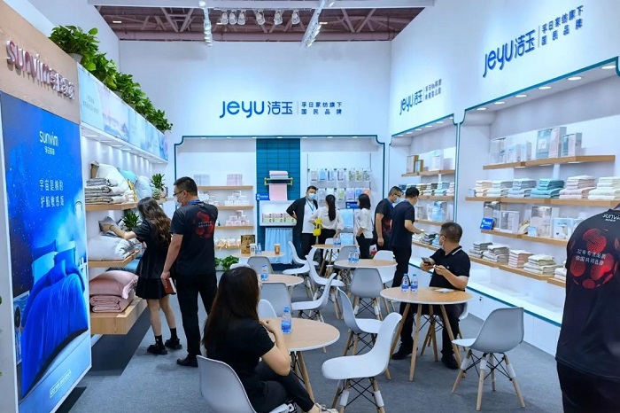 仲夏之月,万物方盛。2022年6月15日至18日,第30届中国(深圳)国际礼品及家居用品展览会盛大举办。作为深圳礼品展的长期参展商,孚日集团携旗下品牌“sunvim孚日家纺”和“jeyu洁玉毛巾” 亮相8号馆8F01-10展位,以“只此青绿 一眼万年”的主题形象,倡导健康、安全、舒适的“孚日6a科技”家居理念。孚日集团董事、副总经理孙浩博莅临展会现场指导。